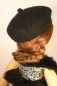 Amber heißt auf englisch 'Bernstein', und ebenso faszinierend-geheimnisvoll wie das Fundstück der Strände kommt auch diese Puppe daher. Sie gehört zur Modellreihe XIV, ist also ein Schlankes Enkelkind. Das aufregendste Merkmal von Amber ist zweifellos ihr bunter Stoffkörper. An Beinen und Rumpf wurde nicht etwa der normale fleischfarbene Stoff verwendet, sondern ein original Liberty-Stoff. Dazu trägt Amber ein sehr hübsches, schwarzes Tüllkleidchen und eine passende Kopfbedeckung. Die Puppe wird in einem extravaganten, silberfarbenen Karton geliefert, dessen halbrund ausgeformtes Inneres mit spiegelnder Silberfolie bespannt ist und ihr so als Ankleidekabine dienen kann.